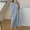 YYFS Women's Fashion Summer Spring Stripe Print 1/2 Sleeves O-Neck Loose Waistline Casual Dresses