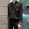 Autumn KPOP Fashion Style Harajuku Slim Fit Ropa Hombre Loose Casual All Match Stand Collar Shirt Solid Button Long Sleeve Blusa