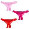 A set of three women's thongs featuring a distinctive ribbon on the front! The suit design of playing cards adds a touch of style.