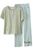 Euyqs Cotton Pajama Long Sleeve Henley Top and Loungewear Light Blue Check Set, Pants, (JP, Alphabet, XL, Pattern)
