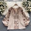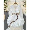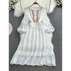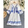 Lantern Sleeve Tassel V-neck Patchwork Loose A- line Dress