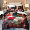 Red Rose Duvet Cover Set Red Flower Gray Background 3D Comforter Cover Valentine's Day Gift King Queen Size For Girls Women Kids
