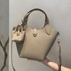 Silver-buckle Leather Women's Bag, Vegetable Basket Bag, Fashionable Handbag, Lychee Pattern Bucket Bag, Ladies' Bag