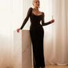Fashion Ins Sexy V-neck Low-Cut Mesh Long Sleeves Silm Hip Split Dress Sexy See-through Waist-Slimming Long Dress