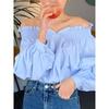 European and American Women clothes Off-shoulder blouse Top Waist Hugging Slimming Sexy Puff sleeve Long sleeve
