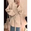 Soft waxy gentle wind lace splicing lace-up knitted sweater women's fashion solid color loose pullover sweater