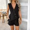 Spring Summer Cross-Border European and American Foreign Trade Women clothes Leisure Solid Holiday Style Button Cardigan Vest Short Pants Two Sets