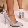 Fashion Brand Design Bowknot Decoration Pumps Women 2025 Summer Sexy Pointed Toe Super High Heel Pumps Luxury Glitter Wedding Shoes