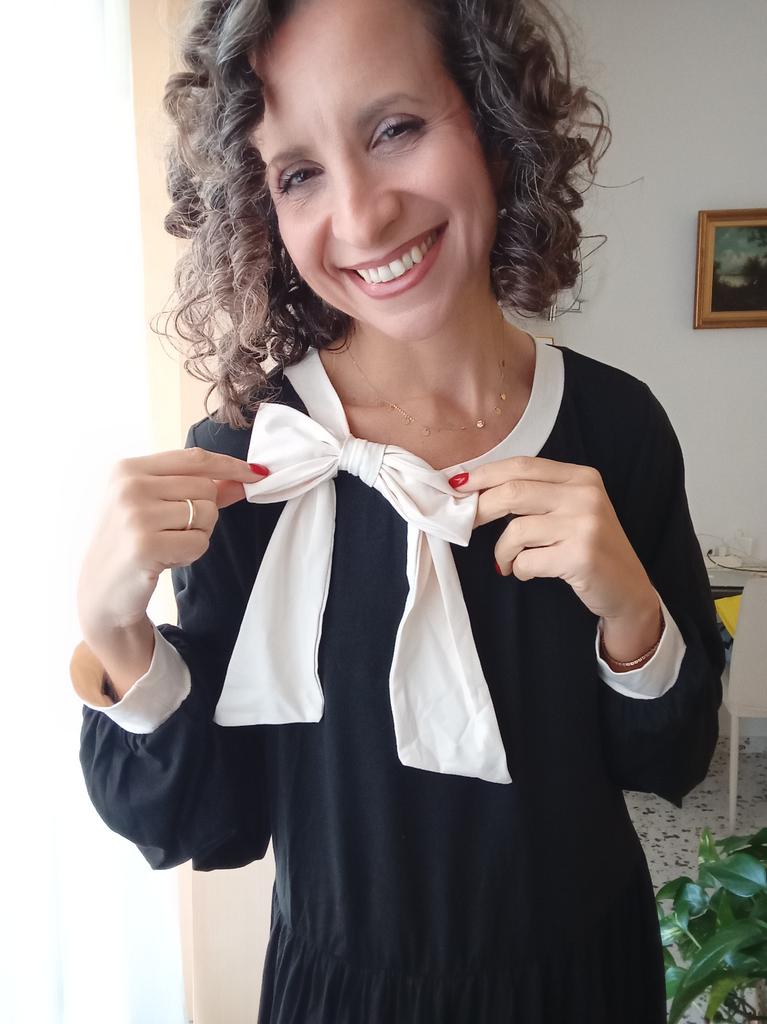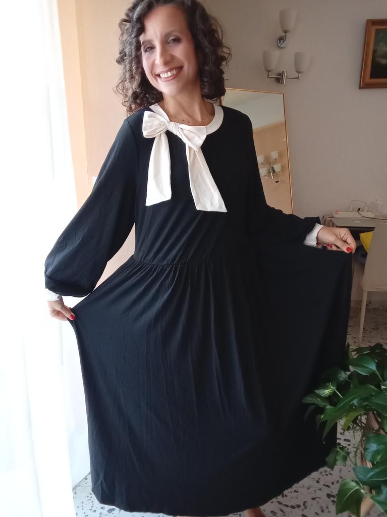 En stor størrelse fargeblokkert tredimensjonal sløyfekjole for kvinner En retro slankende og magefremhevende lang kjole for høst og vinter