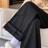 Gray chenille narrow wide-leg pants women's new autumn and winter velvet thickened lazy wind loose straight pants