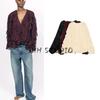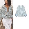 Spring New Women's Clothing French Beads Decoration V Neck Long Sleeves Metal Color Line Print Smock Top 5770024