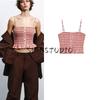 Spring New Women's Clothing French Retro Sexy Slim Fit Tube Top Contrast Color Design Short Spaghetti-Strap Camisole Top