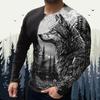 Fashion Wolf Graphic T Shirts Harajuku Animal 3D Printed Long Sleeve T Shirt For Men Clothes Spring And Autumn Unisex Streetwear