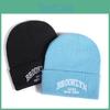 Embroidery Knitted Girl Cap Black Hat No Brim Warm Beanie Winter Casual Wear