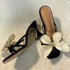 Fashion Female Shoes Butterfly-Knot Square heel Ladies' Slippers Women Heels Luxury Slides 2025 Block High Designer Pumps Slippers Casua