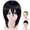 LAOBAO Mash Burned Cosplay Wig, Black Hair Bob Wig, Heat Resistant, Costume Accessory for Parties, Halloween, School Festivals, and Events