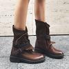Fashion NEW Autumn Women Boots Split Leather Shoes for Women Round Toe Chunky Heel Shoes Zipper Short Boots Casual Buckle Western Boots