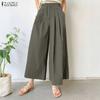 ZANZEA Women Casual Elastic Waist Loose Summer Capris Pants