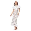 Styl: Postaw na elegancję z tą oszałamiającą damską sukienką z misternym trójwymiarowym haftem kwiatowym, okrągłym dekoltem i pochlebnymi bufiastymi rękawami. Dopasowany krój rybiego ogona doda Twojemu wyglądowi odrobinę wyrafinowania i będzie idealny dla osób poszukujących słodkiego i eleganckiego stroju.