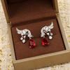 Luxury 100% 925 Sterling Silver Drop Earrings For Women Sparkling 7*9mm Red Diamond Female Earrings Fine Jewelry Earrings Gifts