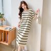 Rochie de vară cu dungi și buzunare laterale ascunse pentru femei, versiune coreeană, de lungime medie, cu crăpătură lejeră pentru a arăta subțire