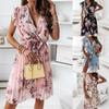 Fashion Women's Summer V Neck Casual Fashion Printed Pullover Short Sleeve Dress