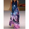 Женское летнее платье макси, женская повседневная свободная макси-юбка без рукавов с цветочным принтом пляжное платье макси с карманами плиссированное платье Хлопковое платье Пляжное платье