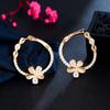 Exquisite Luxury Zircon Embedded Copper Floral Hollow out Petal Earrings Fashion Lucky Flower Shaped Ear Jewelry Accessories