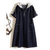 Fresh Women Summer Washed Cotton Denim Blue Front Zipper Easy to Wear with Pockets Dress Slimming Old Pink Close Your Eyes